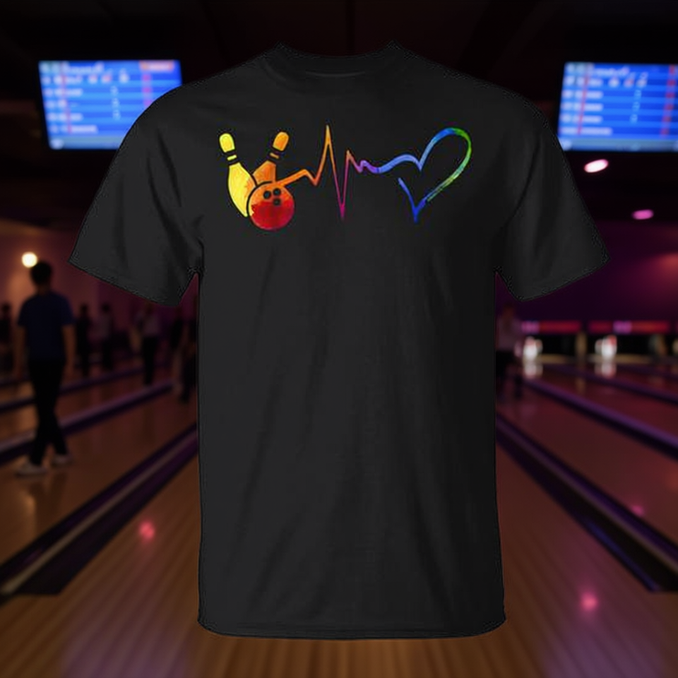 Bowling Heartbeat Tie Dye Colorful T-Shirt Short Sleeve Crew Neck Unisex Adult Sports Game Day Digital Printing
