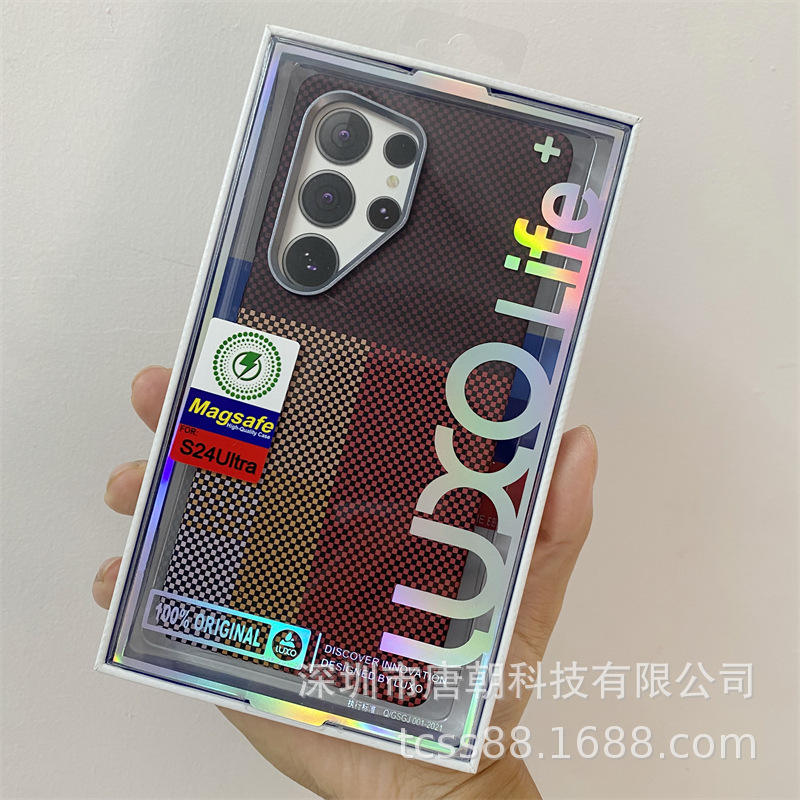 Étui rigide magnétique lumineux LUXO pour surface d'eau, S25, S24, S23Ultra, texture en fibre de carbone gaufrée, téléphone tendance pour Bot