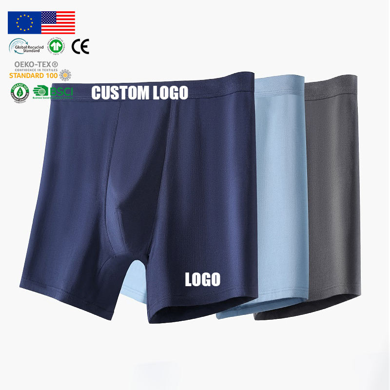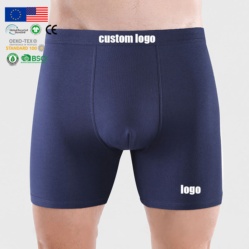 Boxers de musculation pour hommes, couleur unie bleu marine, en tissu lisse, sous-vêtements sans couture en Spandex, faible MOQ