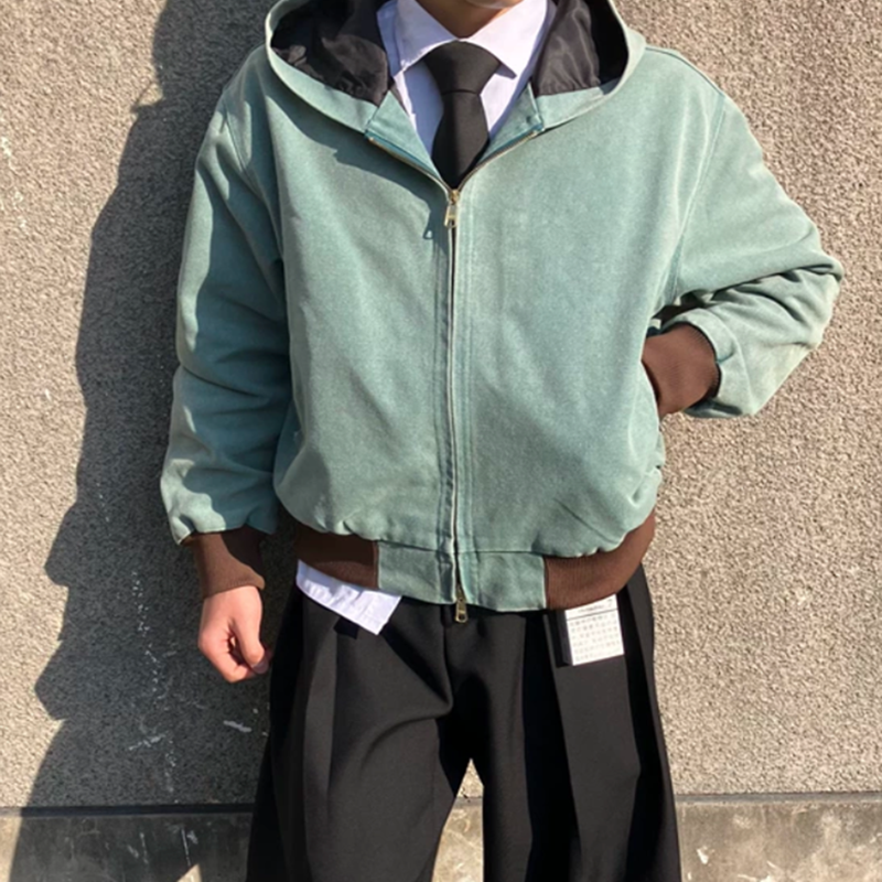 Blouson Bomber Homme Oversize à Fermeture Éclair, Coupe Boxy, Personnalisable, Vintage, en Toile de Coton et Spandex Délavée à la Pierre, Hiver, Grandes Tailles, 50% Coton 50%