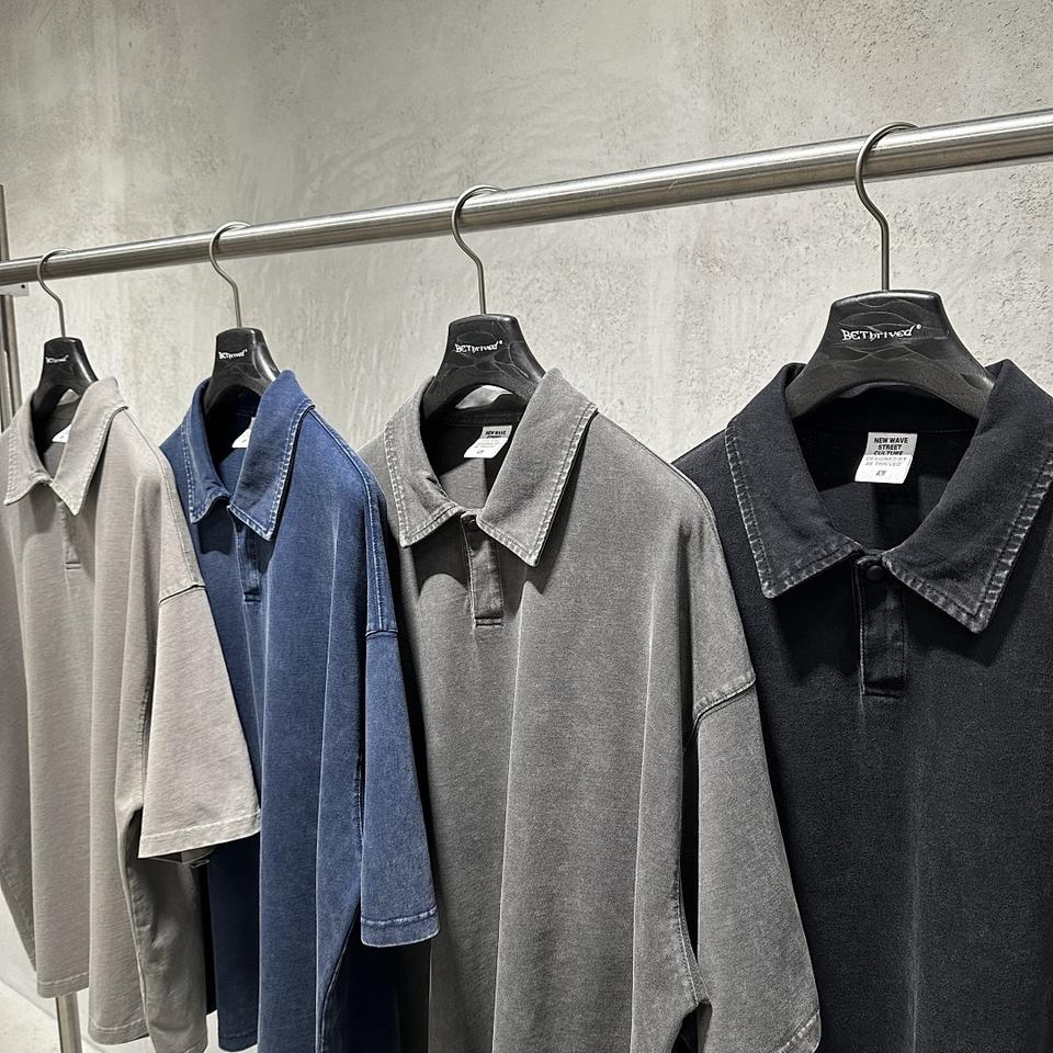 T-shirt à manches courtes, style boxy, col polo rétro vieilli, décontracté et ample