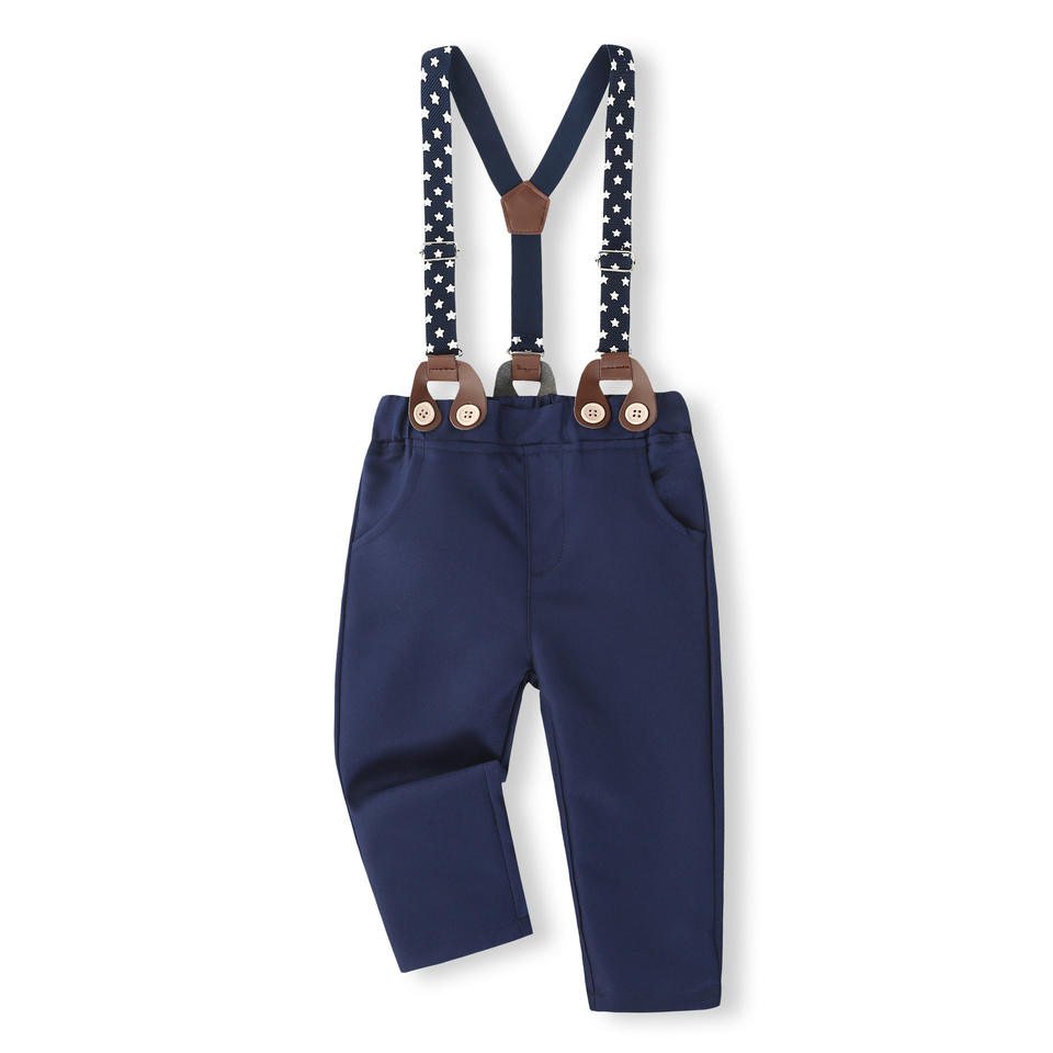 Ensemble de costume pour garçon, chemise blanche à manches longues avec bretelles et nœud papillon, tenue de fête de printemps en 3 pièces pour garçons, tenue de dîner formelle