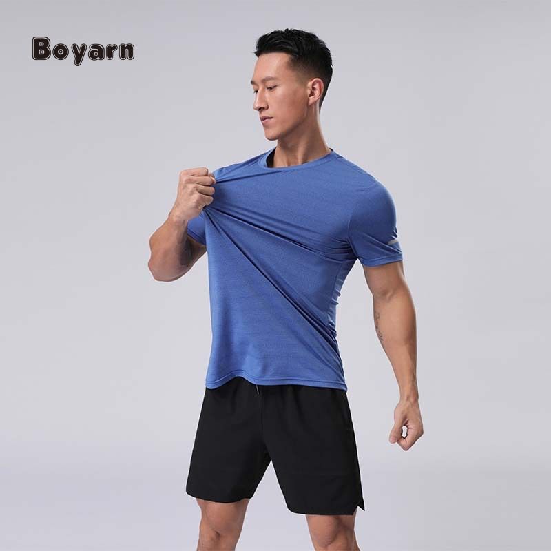 Boyarn chemise athlétique d'entraînement pour hommes avec bande réfléchissante chemises en Polyester Slim Fit à séchage rapide Fitness Gym Sport t-shirt