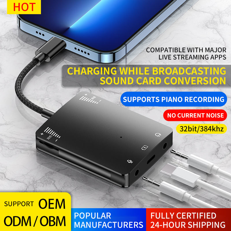 Boyi 3-en-1 Type C à 3.5mm Jack écouteurs convertisseur adaptateur de carte son en direct Protection OTP pour Huawei pour Samsung Type de sortie