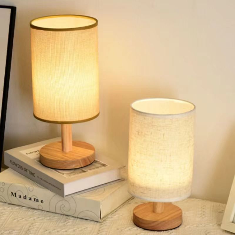 Boyid Log lampe simple lampe de lit en tissu décoratif nordique en bois massif atmosphère rétro petite veilleuse