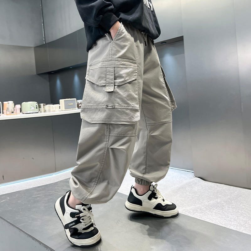 Pantalons cargo pour garçons Printemps Automne Pantalons froissés Pantalons larges pour enfants Pantalons longs décontractés