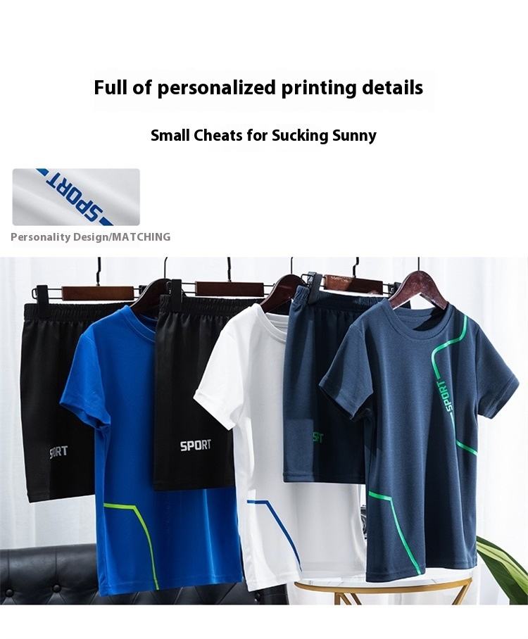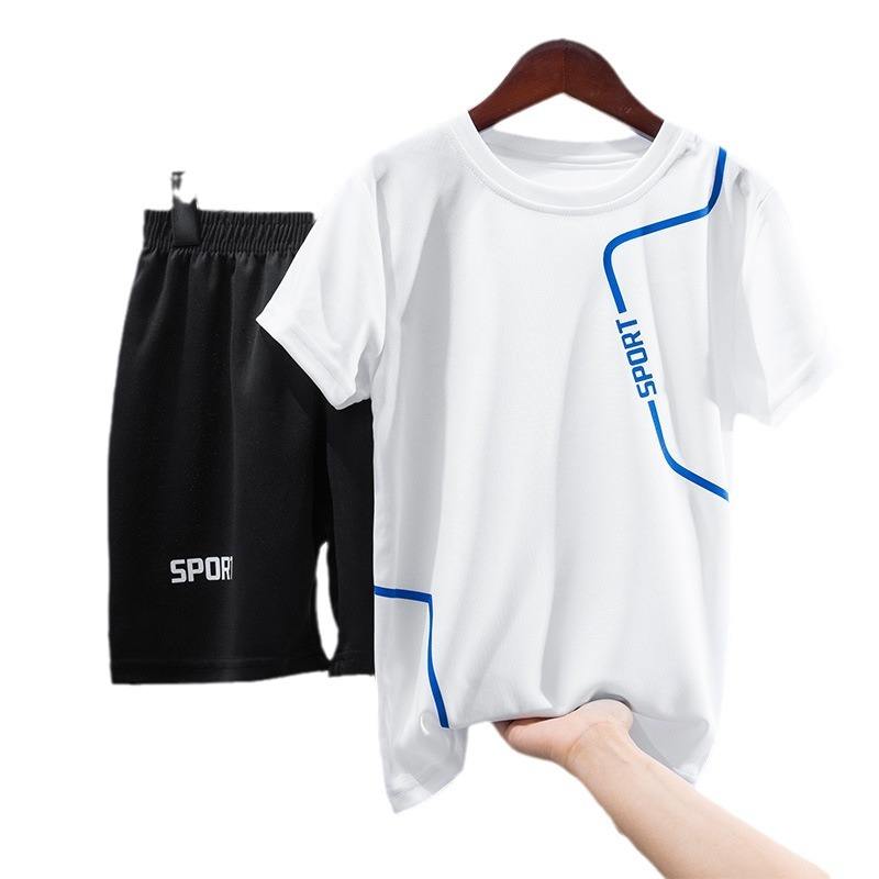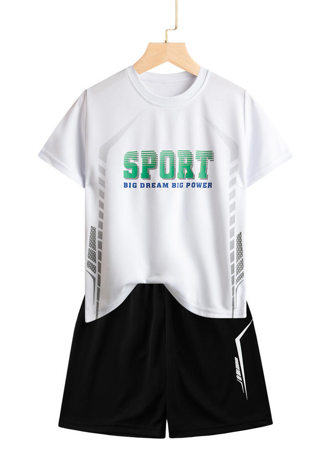 Ensemble d'entraînement deux pièces pour garçons, motif lettres tendance, confortable, idéal pour le sport d'été et le basketball