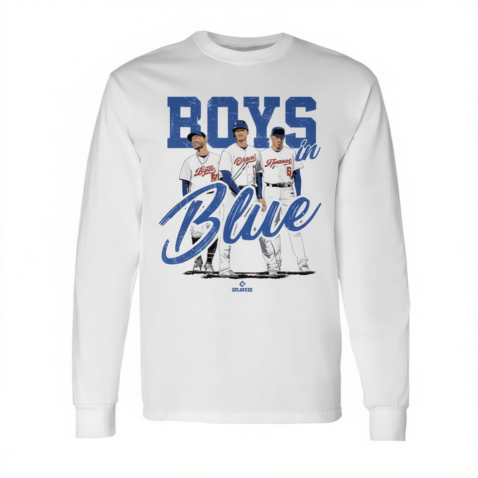 T-shirt à manches longues pour garçons, bleu, joueurs de baseball, blanc, Mlboht3001w