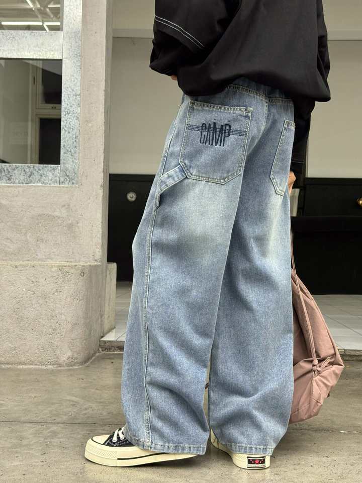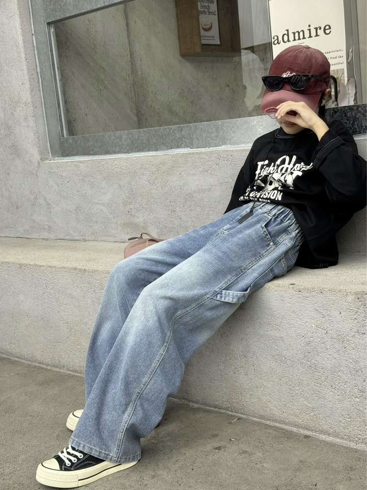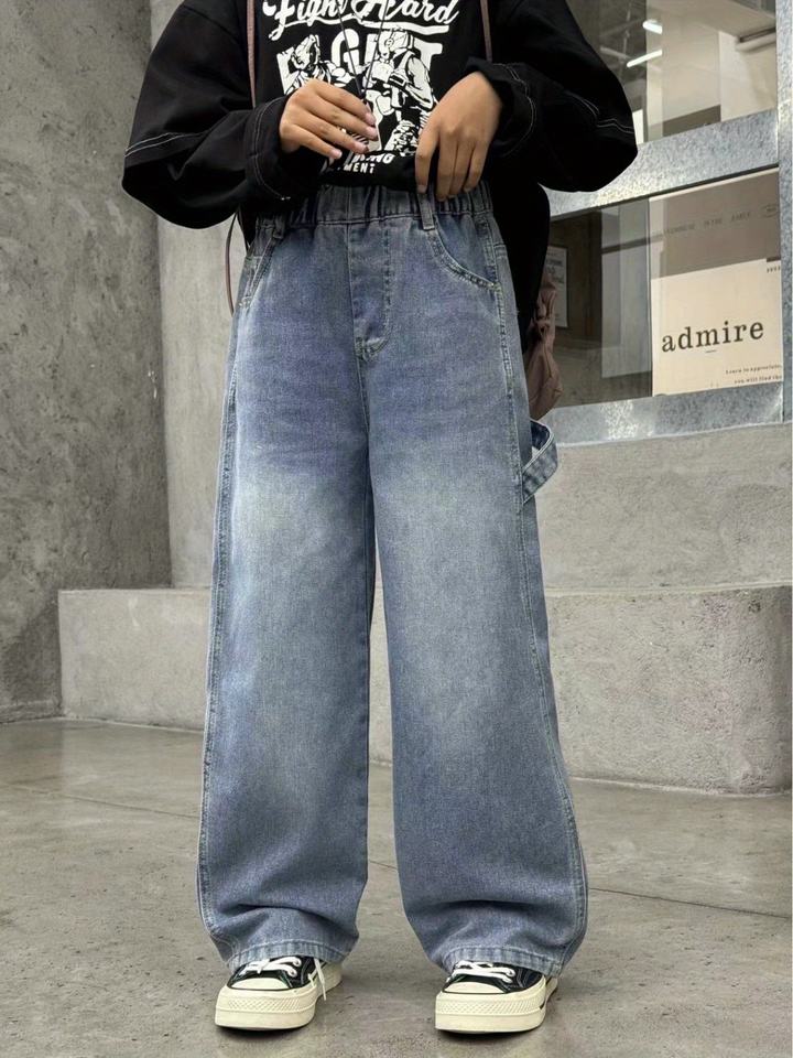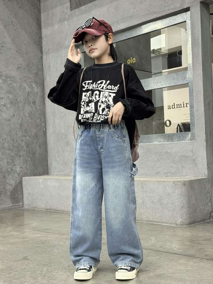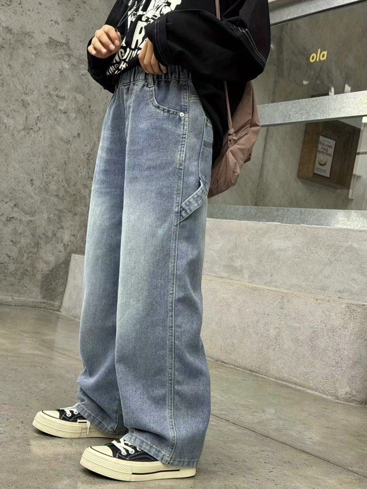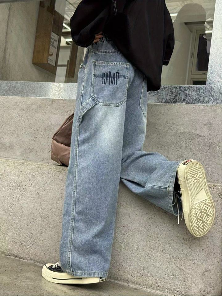 Lettrage brodé ample pour garçon-Pantalon à jambe droite avec taille élastique, confort toutes saisons pour une tenue décontractée, confortable