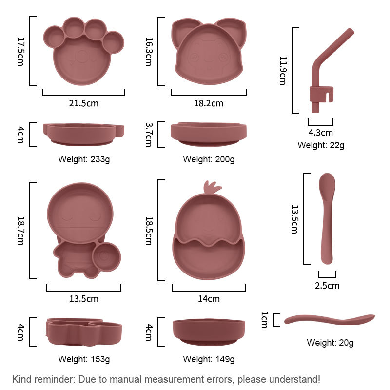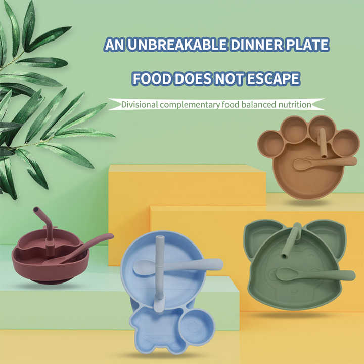 Vaisselle pour enfants sans Bpa vaisselle avec paille Assiettes et cuillères en silicone pour enfants animaux alimentation bébé ensemble de sevrage à LED