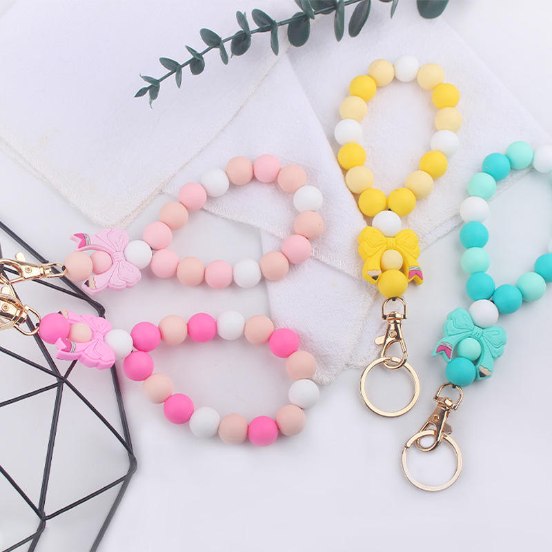 Bracelet porte-clés dessin animé Silicone crayon arc pendentif Silicone perlé porte-clés