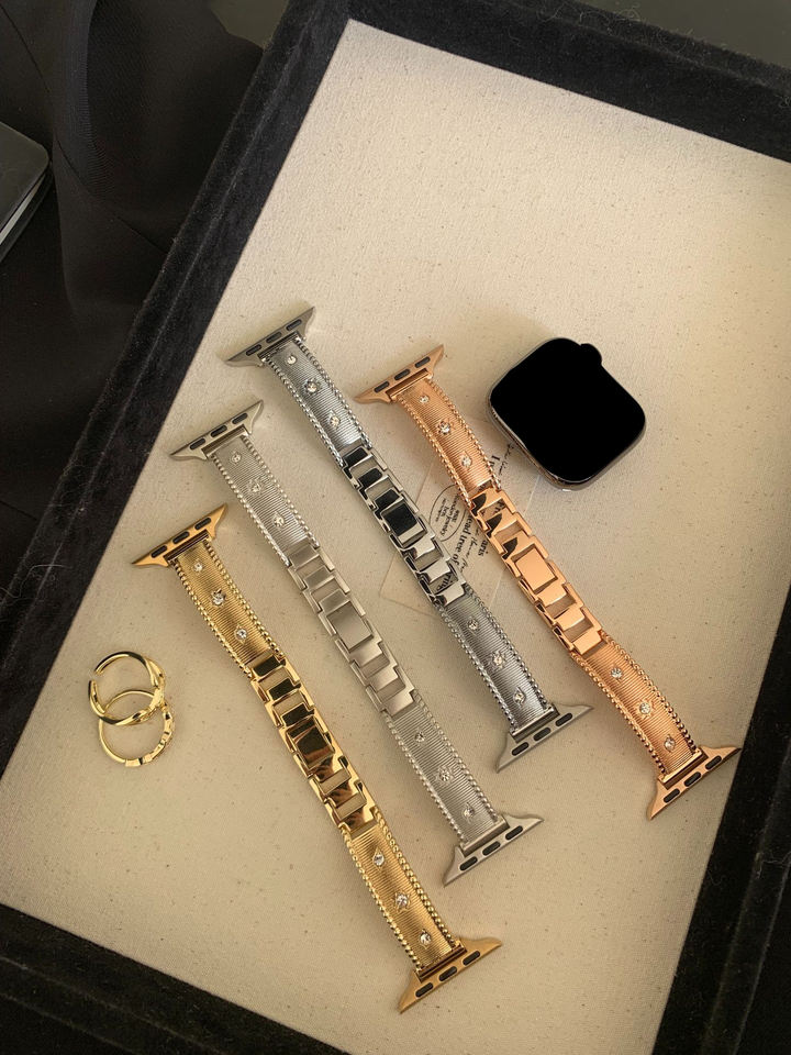 Bracelet de montre en métal serti de diamants pour Apple Watch Series 10/9/8/7/SE/6/5, bracelet de luxe, accessoires de remplacement pour iWatch
