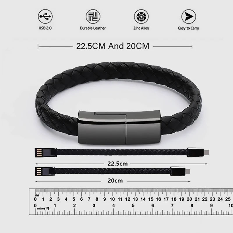 Câble USB Bracelet Portable pour Charge Rapide, Cordon de Chargeur USB Micro Type C pour Samsung Xiaomi Huawei