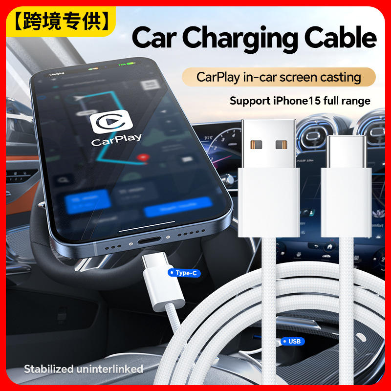 Câble tressé pour iPhone 15, câble de charge USB vers Type-C CarPlay, utilisation en voiture