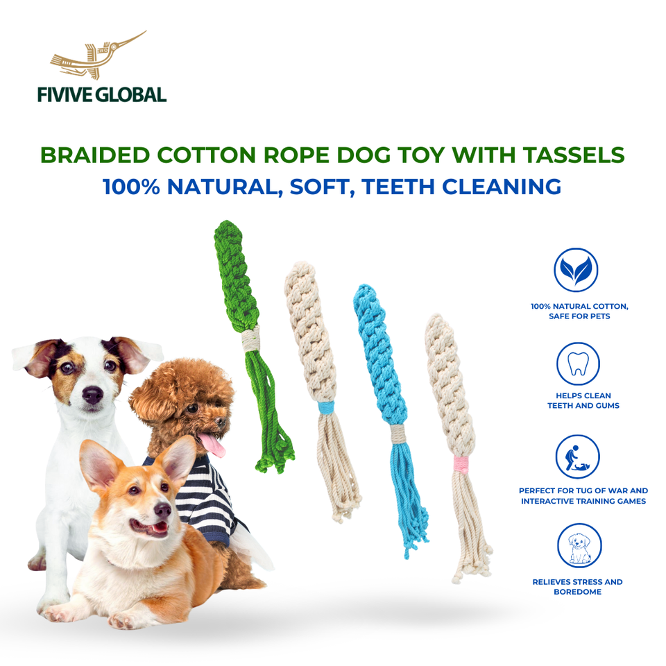 Jouet pour chien en corde de coton tressée avec pompons, conçu pour la mastication, le tirage, le soulagement du stress et les séances de jeu interactives quotidiennes