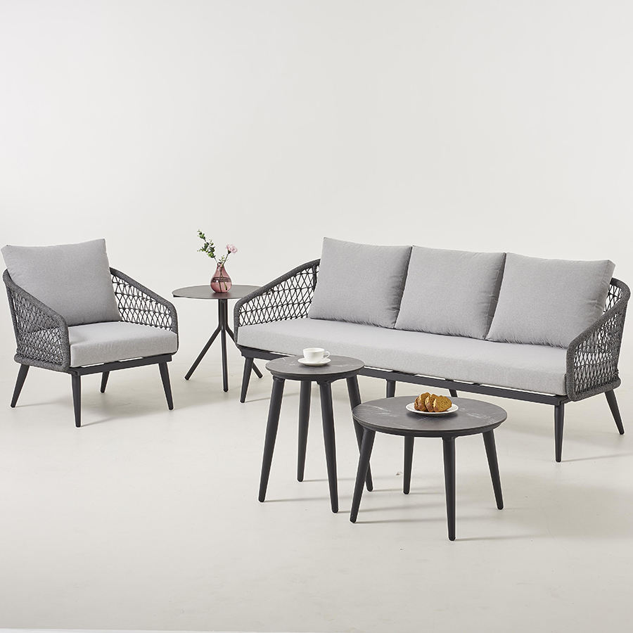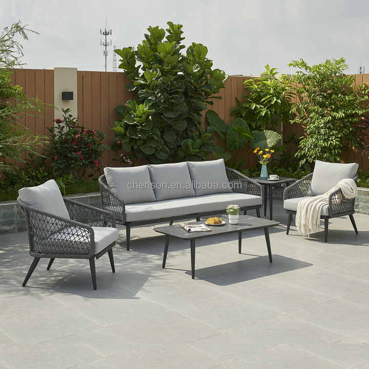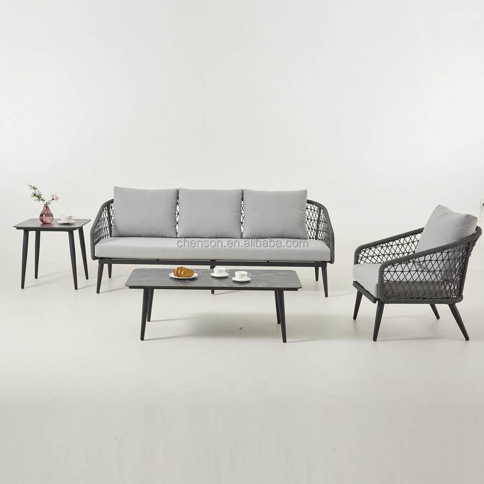 Ensemble de canapés de jardin tressés pour hôtel-Mobilier d'extérieur en aluminium de haute qualité avec table basse en HPL, élégant pour hôtels et jardins
