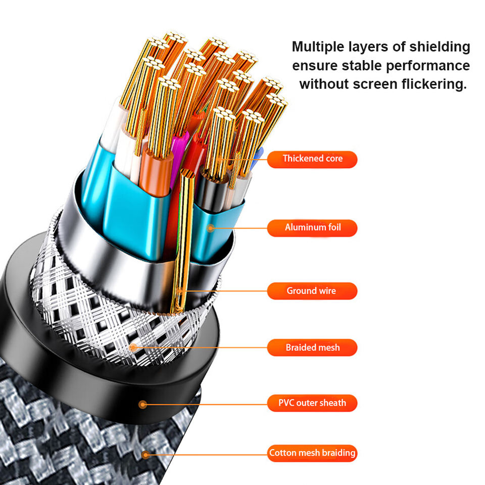 A152-2 en maille tressée DP pour câble adaptateur HDMI 8K/60Hz 1.4 feuille d'aluminium sans oxygène cuivre PVC pour câble HDMI pour moniteur TV