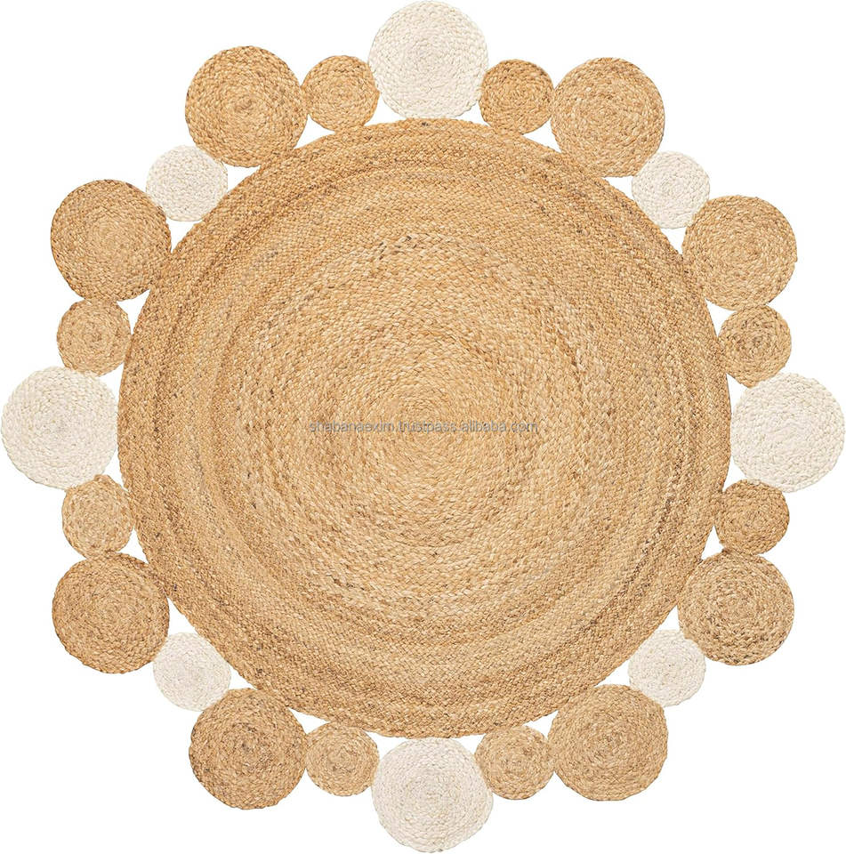 Tapis rond tressé en jute Chaleur rustique pour les chambres Salons Tapis ronds en jute Espaces intérieurs et extérieurs