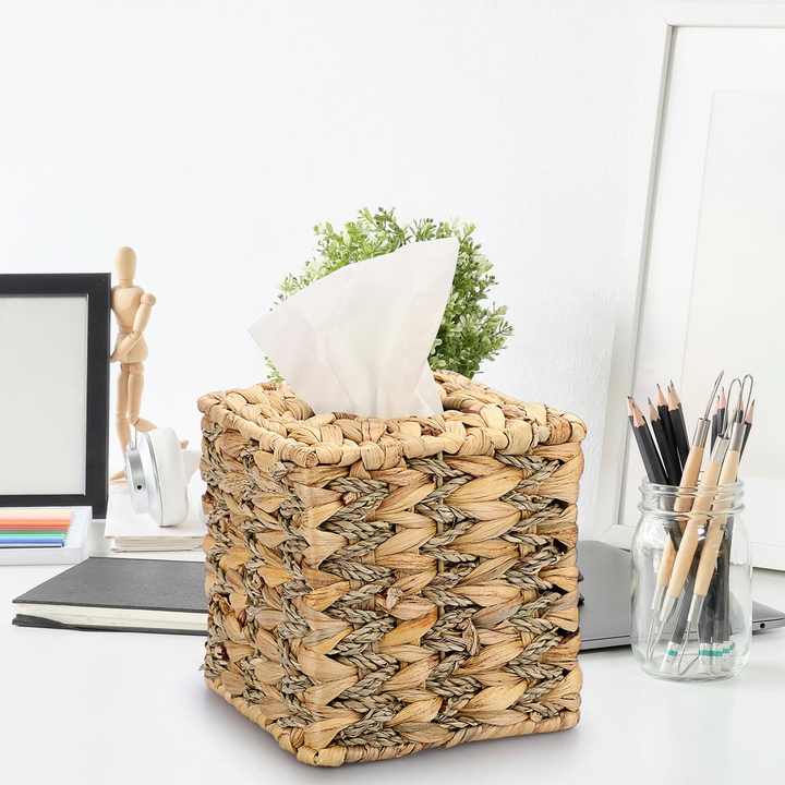 Braided Tissue Storage Holder Luxury Style Water Hyacinth Paper Cover Holders Box Trays Cheapest Price