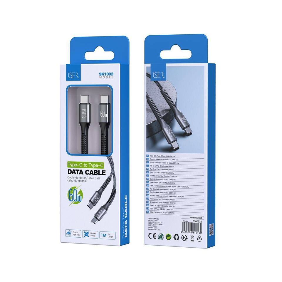 Tressé Type-C à Type-C Câble 60W 1M Noir-Accessoires électroniques