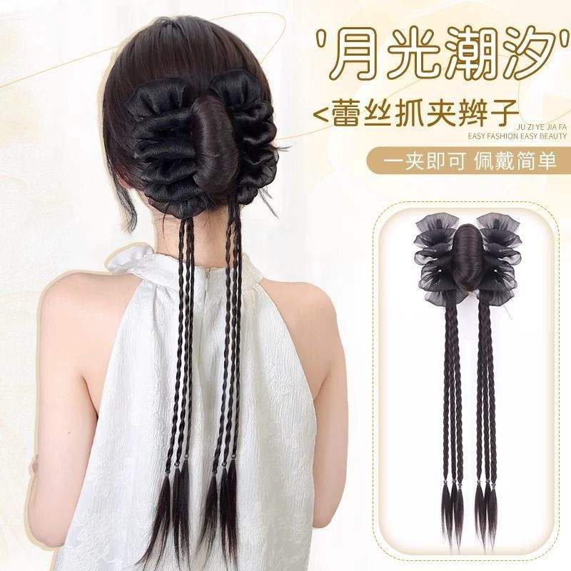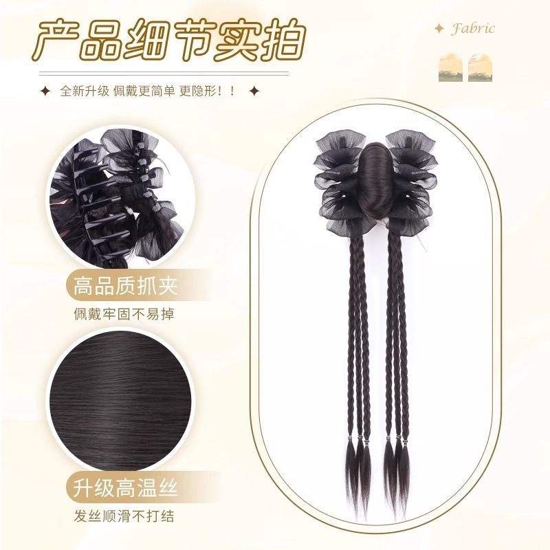 Perruque tressée avec pince à cheveux, longue tresse queue de cheval, accessoire capillaire de style chinois pour femme, voile noir, 6 brins, fabrication artisanale