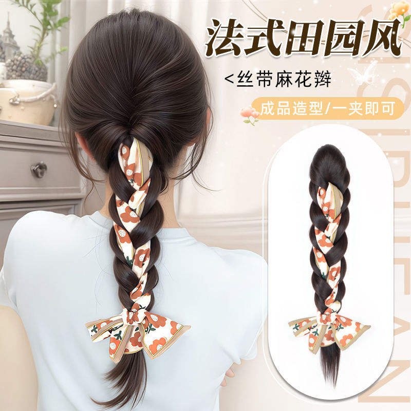 Braided Wig With Clips Low Ponytail Simulated Hair Ribbon Long Braid New Chinese Style Ponytail Wig