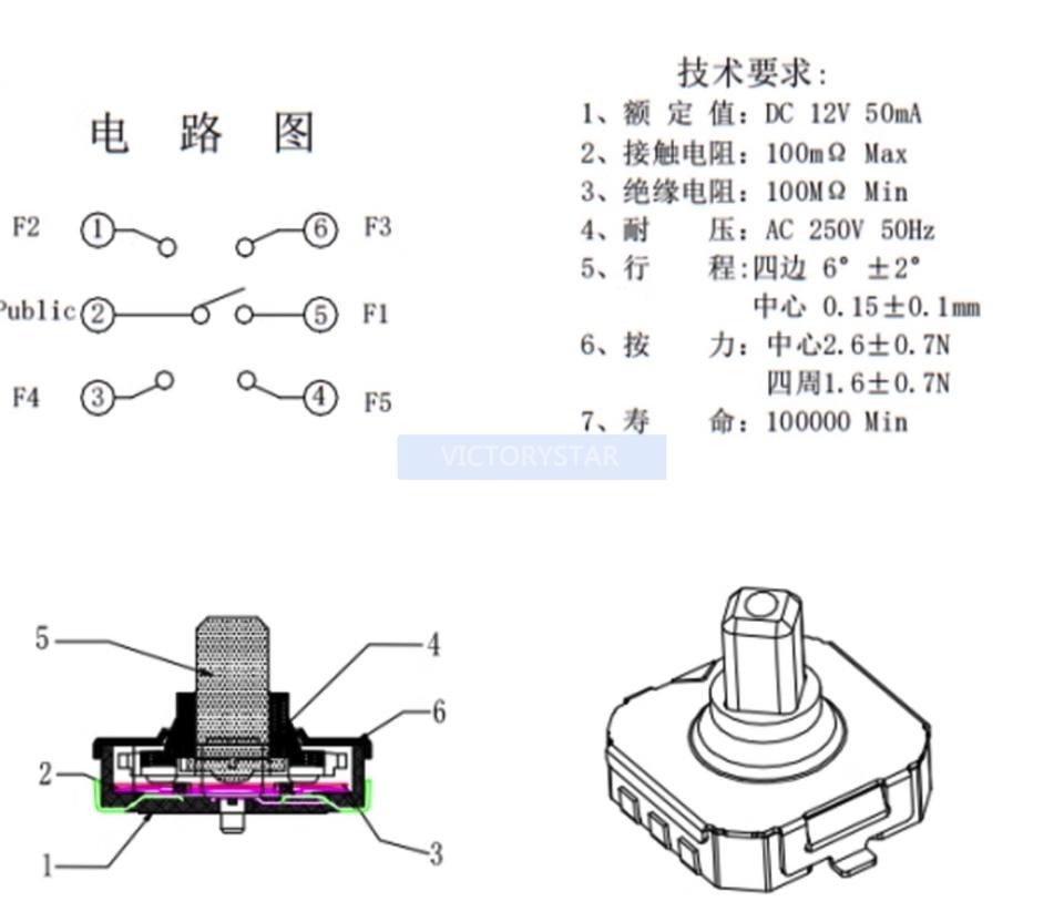 Description:Braided With 75 75 5 five way switch 1pin straight foot patch 6pin multidirectional button navigation key switchSwitching devicerelay