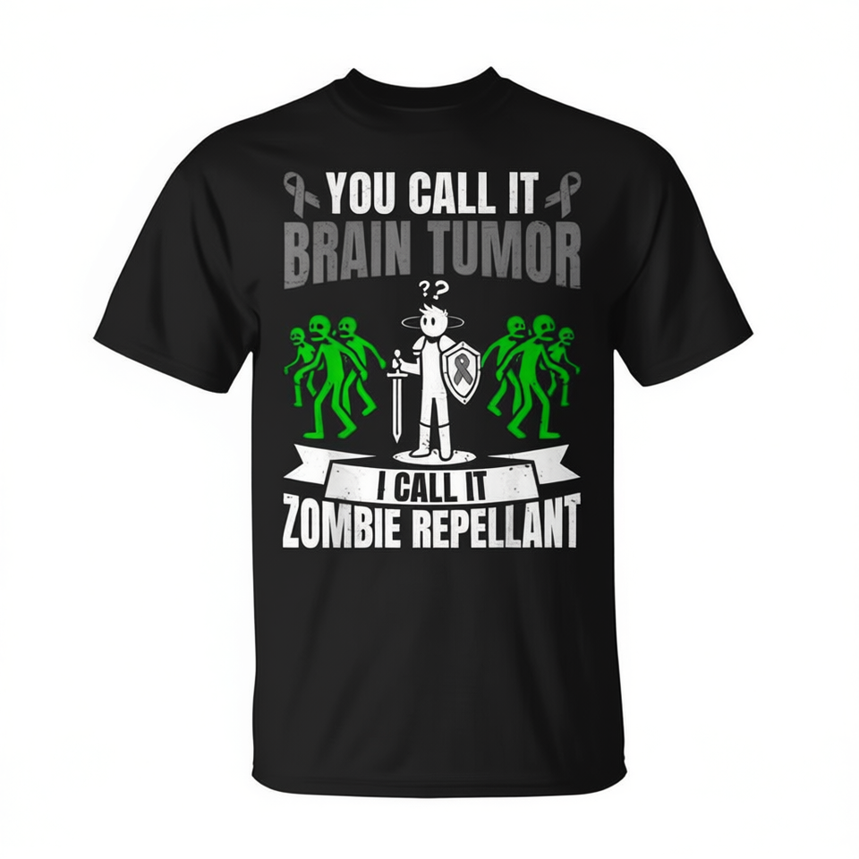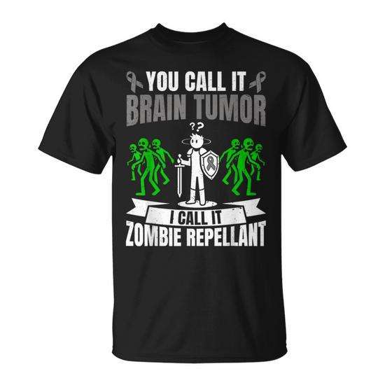 T-shirt Brain Tumor Warrior Brain Cancer pour hommes et femmes avec motif anti-zombie, noir, taille moyenne