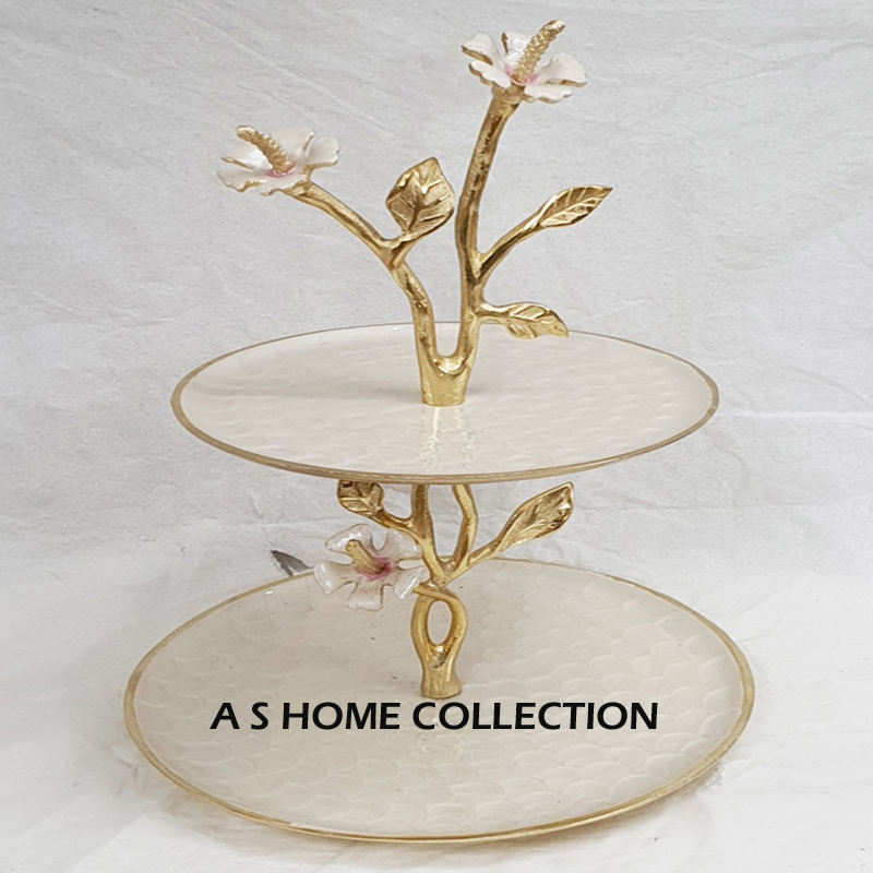Branches Design Support à gâteau en métal plaqué or à 2 niveaux de forme ronde pour tout type de présentoir d'occasion divertissante