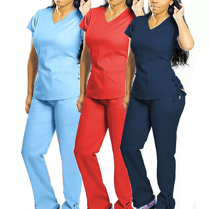 Logo de marque soutien personnalisé mode rond col en V tissu extensible femmes infirmière médical gommages costumes grande taille grossiste
