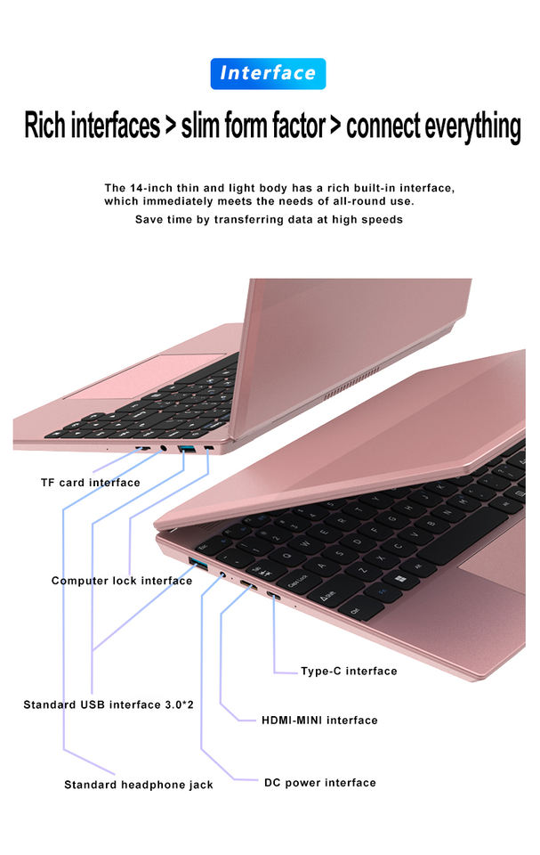Ordinateur portable flambant neuf de 14 pouces avec processeur Intel N5095, ouverture et fermeture à 180 degrés, prix d'usine, personnalisation du logo