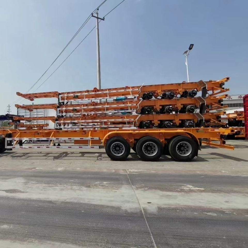 Tout nouveau 3 essieux 40 pieds 40 tonnes squelette semi-remorque conteneur d'expédition remorque transport châssis camion avec 12 pièces serrure à torsion