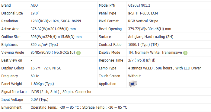 Type de panneau:LCM TFT-LCD A-Si