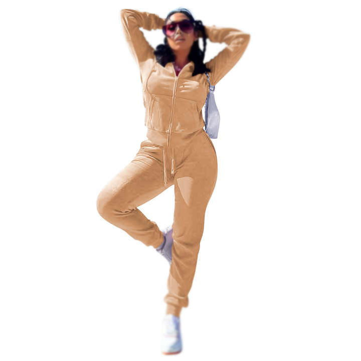 Brand New Autumn Winter Velour Tracksuit For Women Long Sleeve Solid Color Hoodies Jogging Suit Two Piece Pants Set