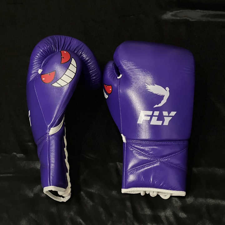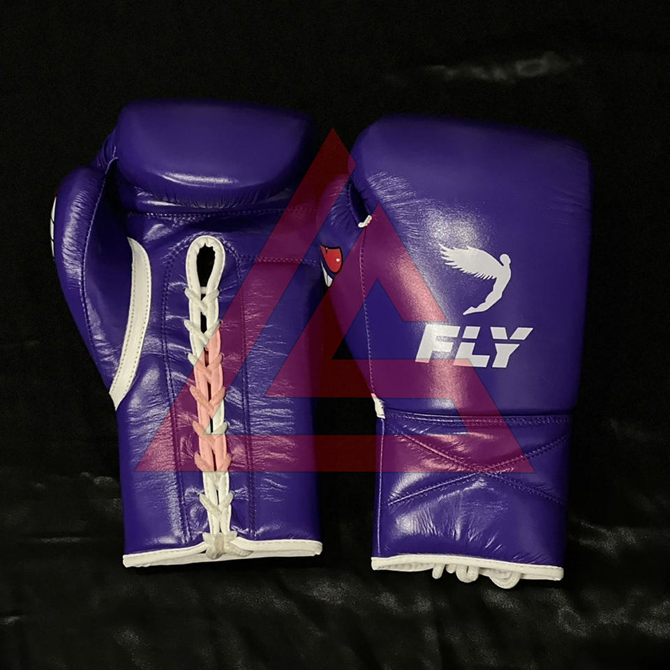 Gants de boxe personnalisés neufs, imprimés et lacés, couleur violet, en cuir véritable, gants de frappe professionnels