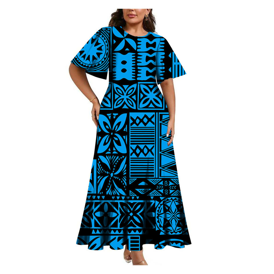 Robe longue plissée à manches mi-évasées sur mesure, taille plus, style hawaïen, robe décontractée pour femmes, robe polynésienne