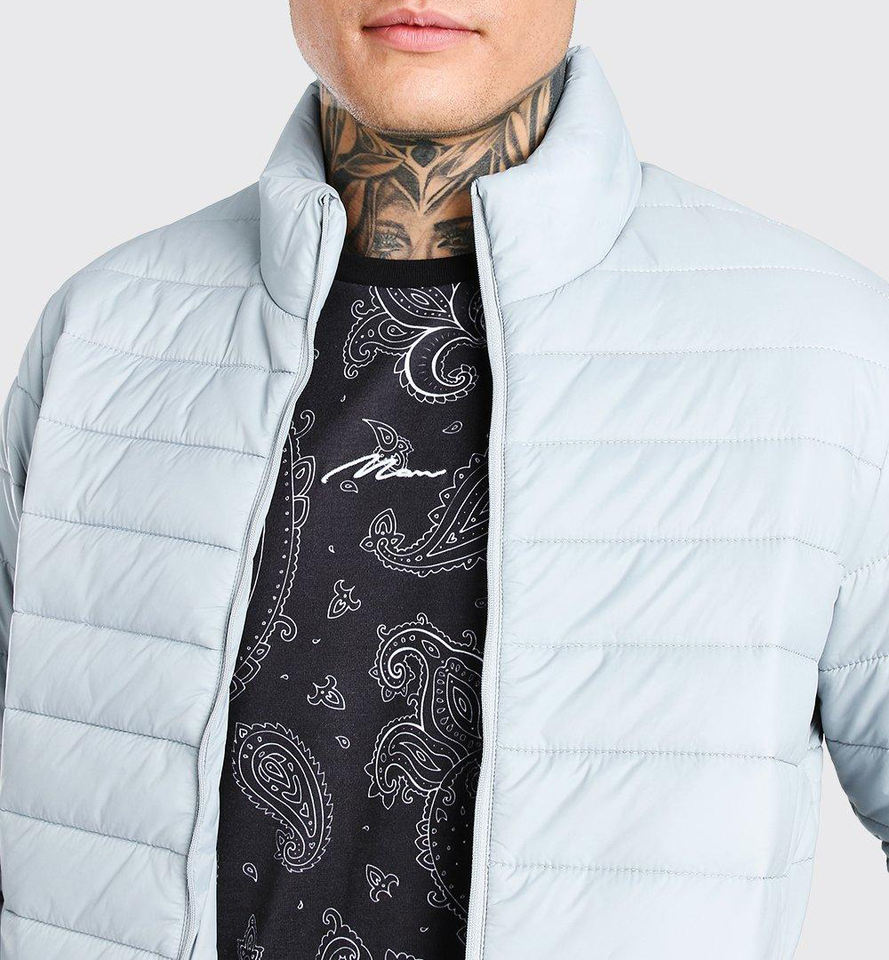 Veste d'hiver pour homme en toile matelassée, sur mesure, de haute qualité, avec col montant, logo sur le devant et fermeture éclair épaisse.