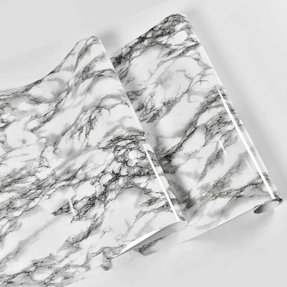 Tout nouveau marbre effet PVC Films adhésifs rouleau revêtement salle de bain douche papier peint pour hôtel utiliser mots croisés indice chine marbre Film