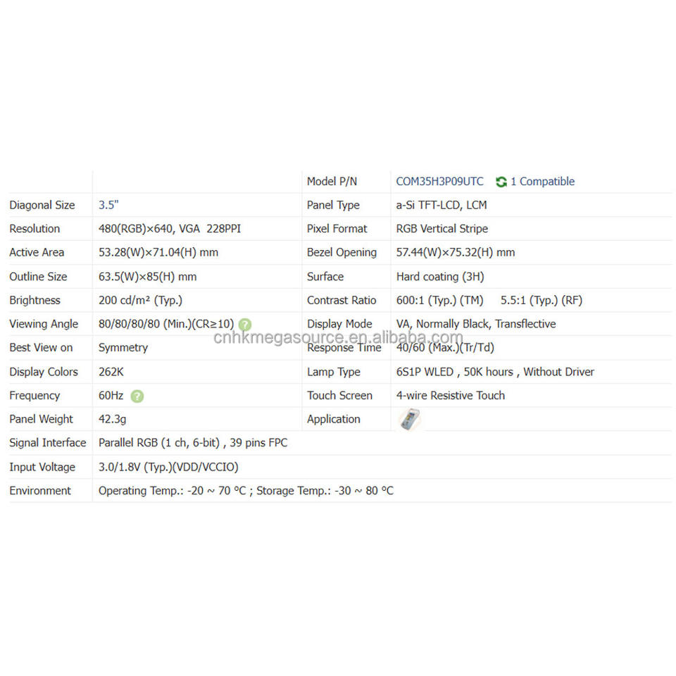 Écran LCD d'origine neuf COM35H3P09UTC pour application industrielle COM35H3P09UTC