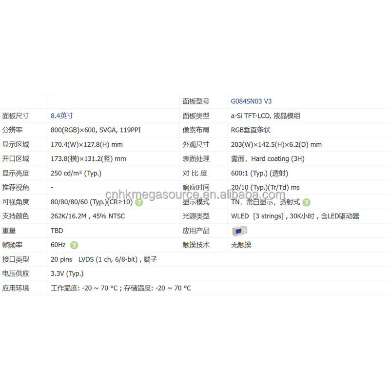 Model:G084SN03 V3
