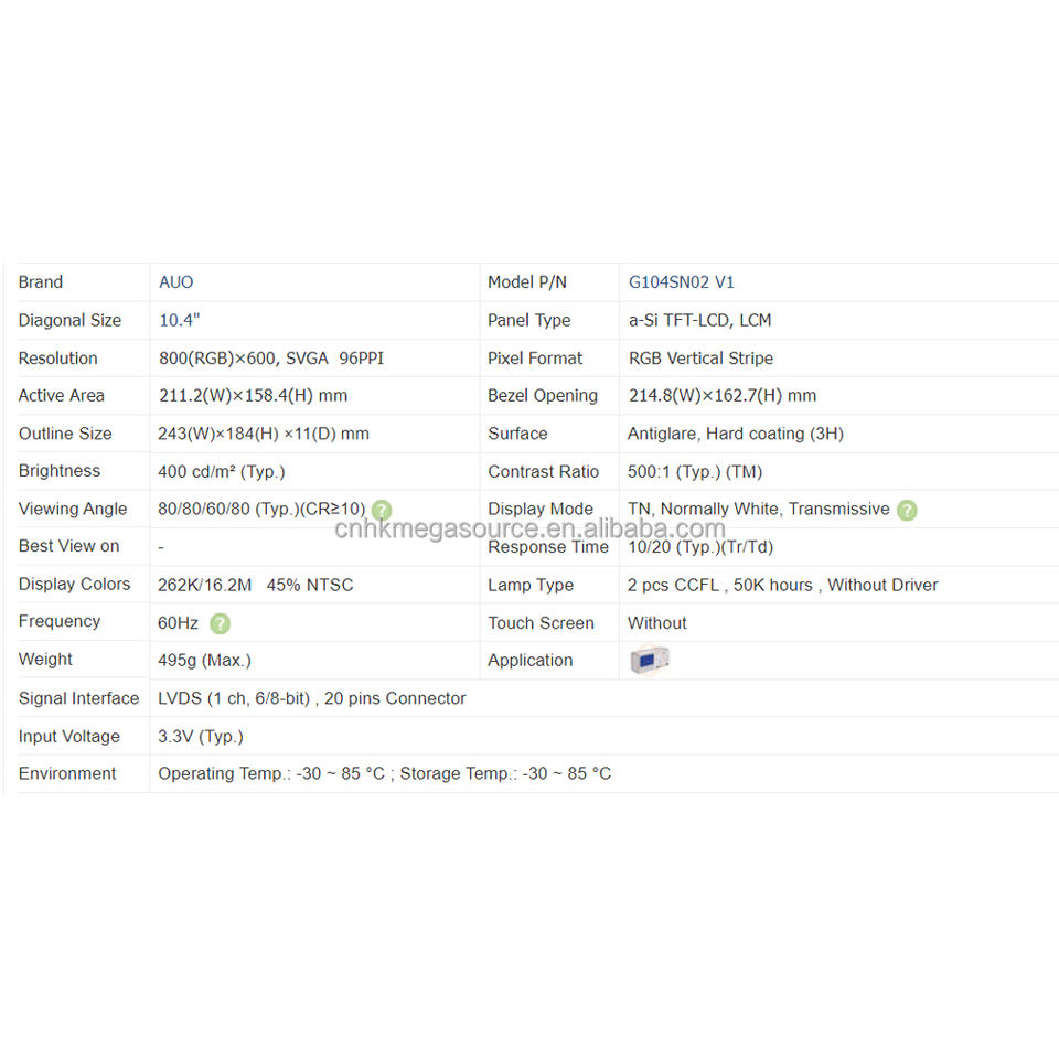 Model:G104SN02 V1