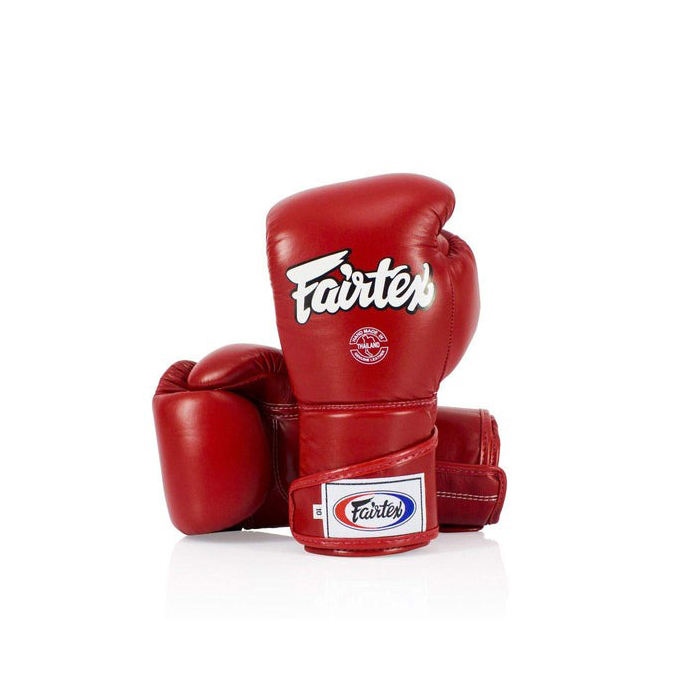 Gants de boxe Fairtex neufs de couleur rouge, à lacets, tendance, pour le Muay Thai, le sparring et la frappe sur sac de frappe lourd.