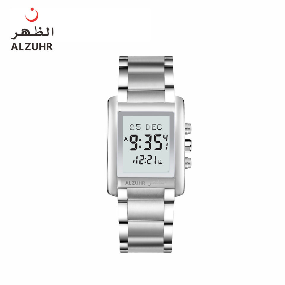 Brand New World Prayer Times Rectangle Montre Alfajr en acier inoxydable avec boussole Qibla