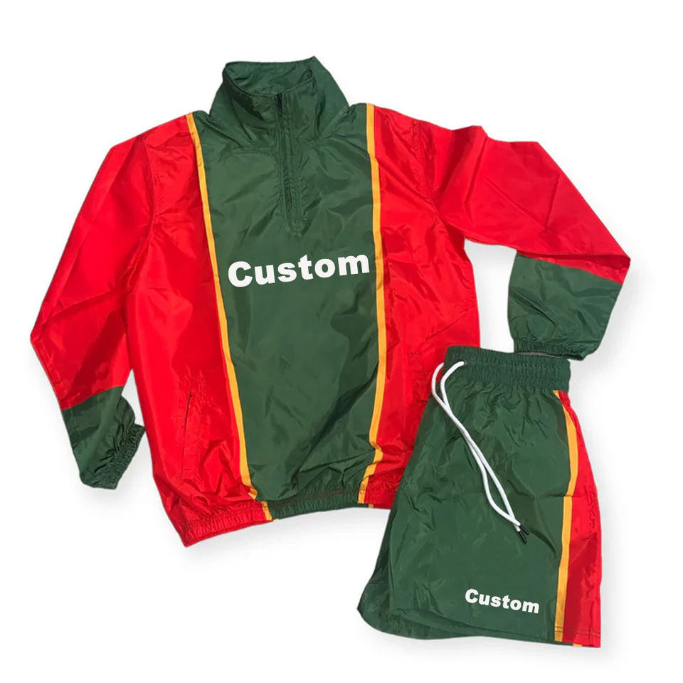 Ensemble de survêtement coupe-vent respirant en nylon avec veste zippée et pantalon de jogging, imprimé avec le logo de la marque Sy Word, personnalisable