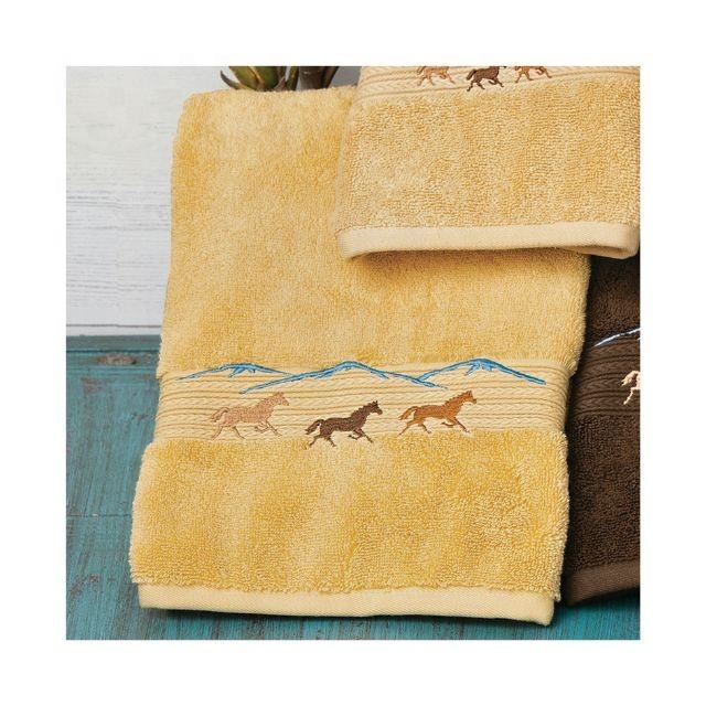 Marque promotionnelle montagne équitation cheval brodé 100% bio pur coton Absorption d'eau écologique Golf ensembles de serviettes de bain