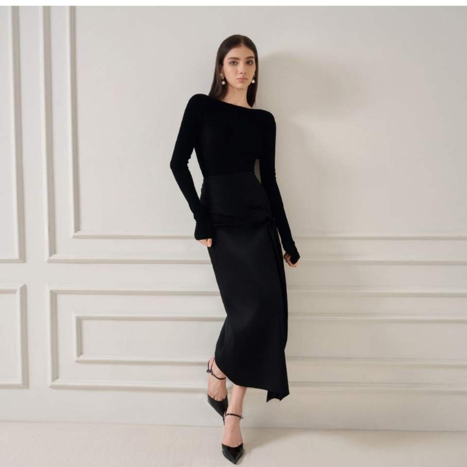 Brands Vietnam Women's Formal Skirts LIIA SILK-BLEND MIDI WRAP SKIRT Mison Satin Twist-Front Trendy Women's Clothing