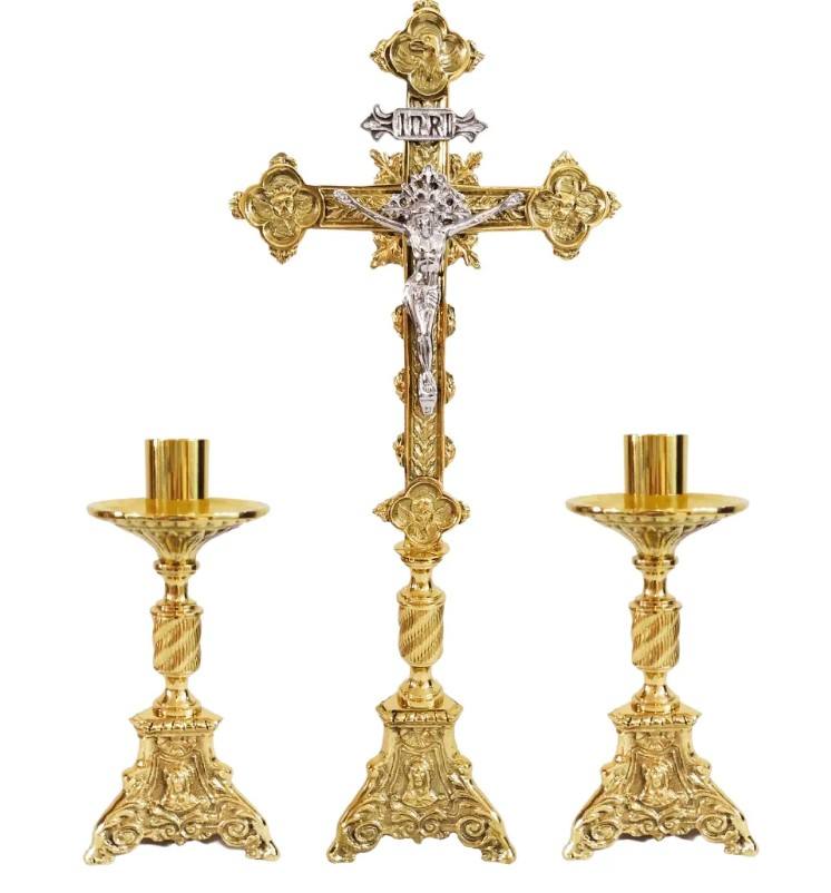 Nom du produit:Ensemble d'autel en laiton avec croix et bougeoirs