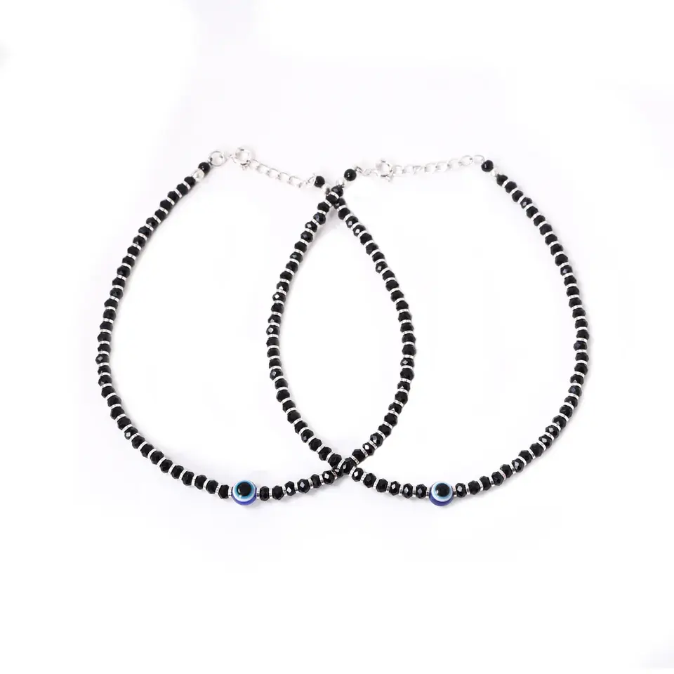 Brass Anklets Evil Eye Black Bead Gold Plated Bohemian Style Butterfly Number Patterns for Women's Protection Gift Moissanite