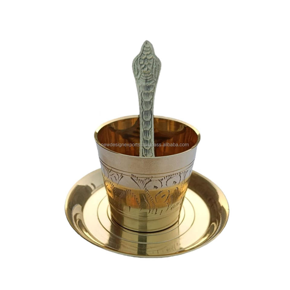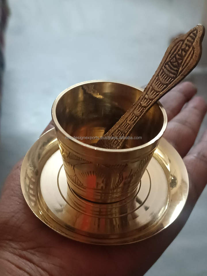 Brass Antique Panchpatra Set with Achamani & Thali