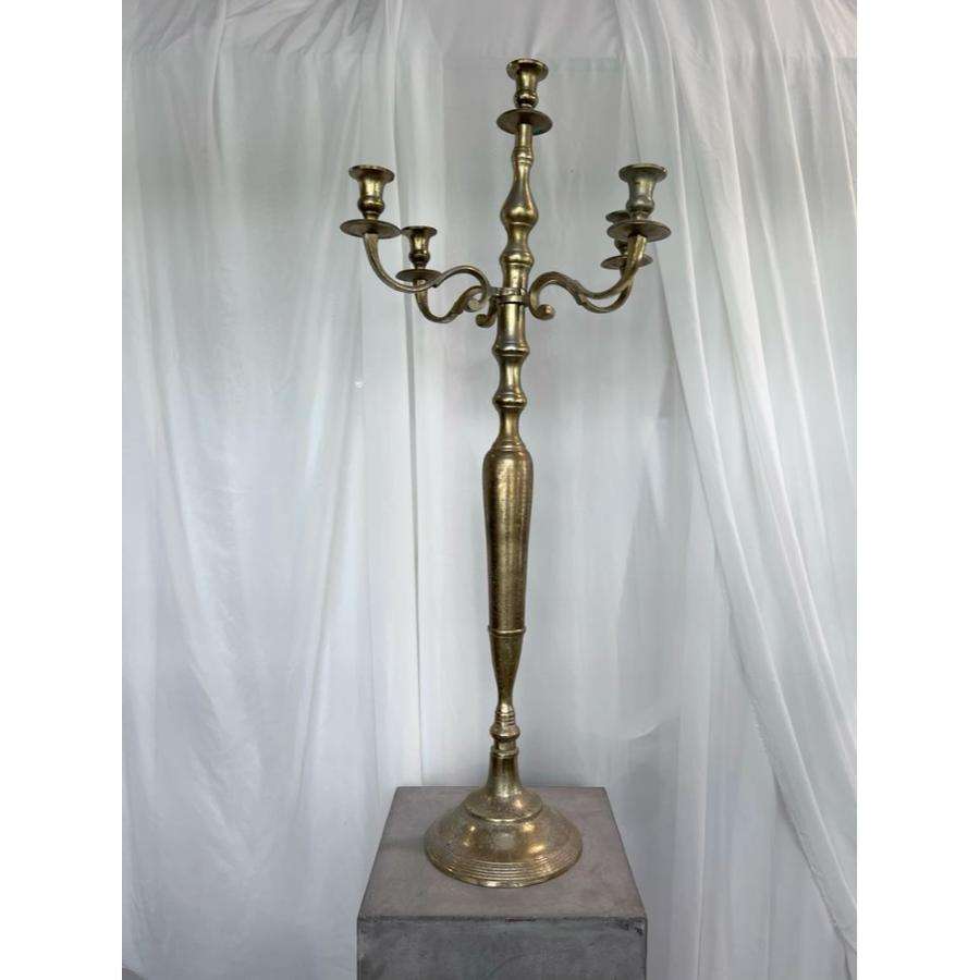 Brass Antique Pillar 5 Arms Luxury Candlestick Stand Decorative Metal Crafts Candle Holder Brass Tall Height Candle Stand Latest